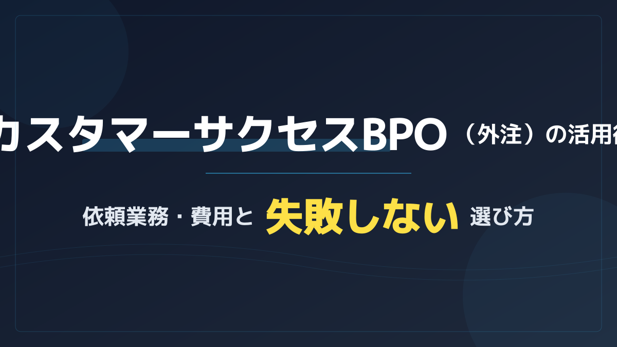 カスタマーサクセスBPO(外注)を活用し、事業成長を加速させる方法を解説します。「未経験の求人で採用・育成する時間がない…」とお悩みの企業向けに、専門ノウハウを持つ外注先へ依頼すべき業務範囲や費用相場、失敗しない委託先の選び方を網羅しました。